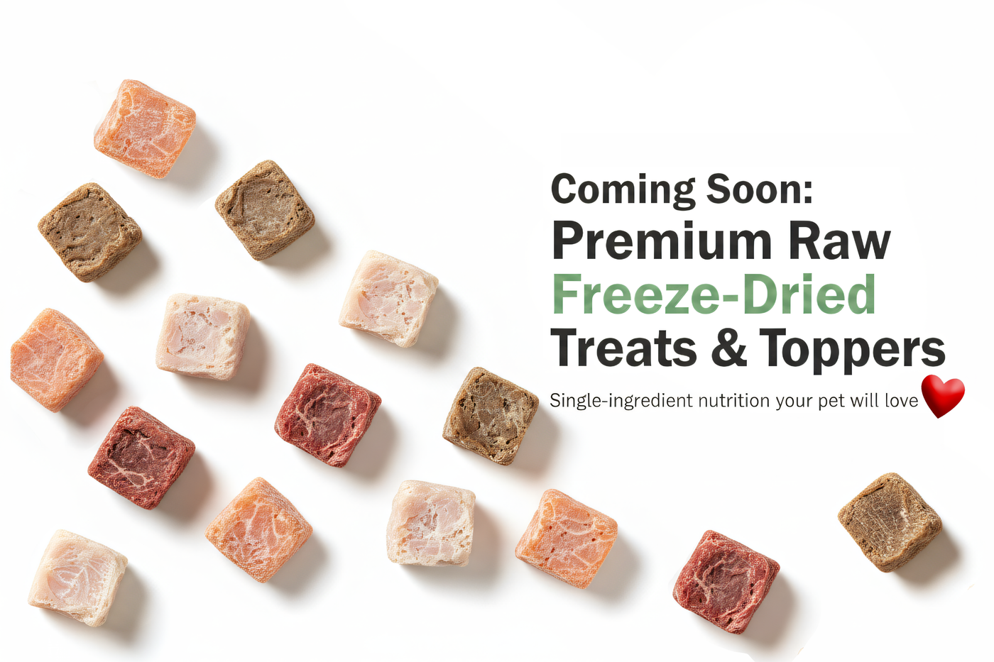 Premium, Single Ingredient Raw Freeze-Dried Proteins for Happy, Healthy Pets.